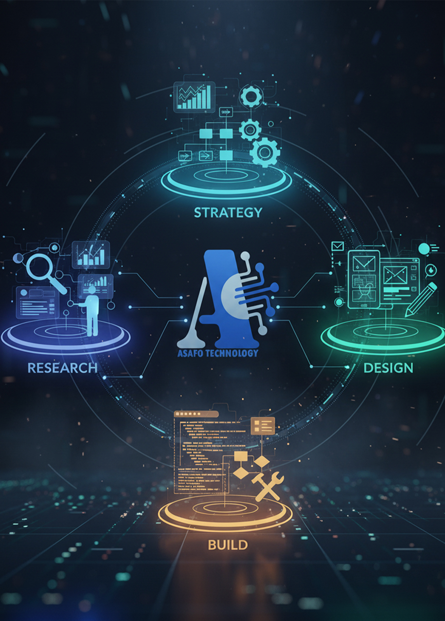 Asafo Technology is a forward-thinking technology solutions company dedicated to empowering businesses and individuals through innovative digital products and reliable IT services. We specialize in Software Development, Website Development, Graphic Design, and the Sale & Installation of Computers and Accessories, providing end-to-end technology solutions that drive growth and digital transformation.